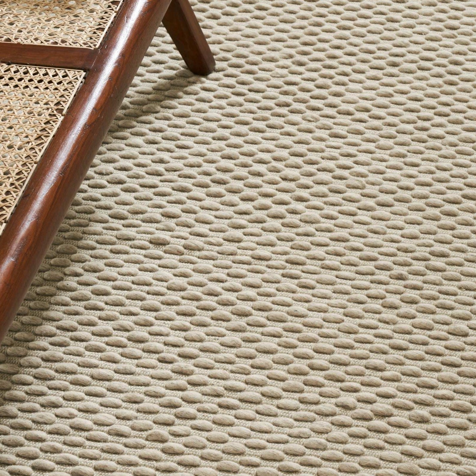 Like a bed of pebbles, Choma's mounds of boiled New Zealand wool are shaped and softened by water. With a foundation of natural cotton woven into the mix, Choma brings, gently underfoot, the depth and stillness of a river bed.