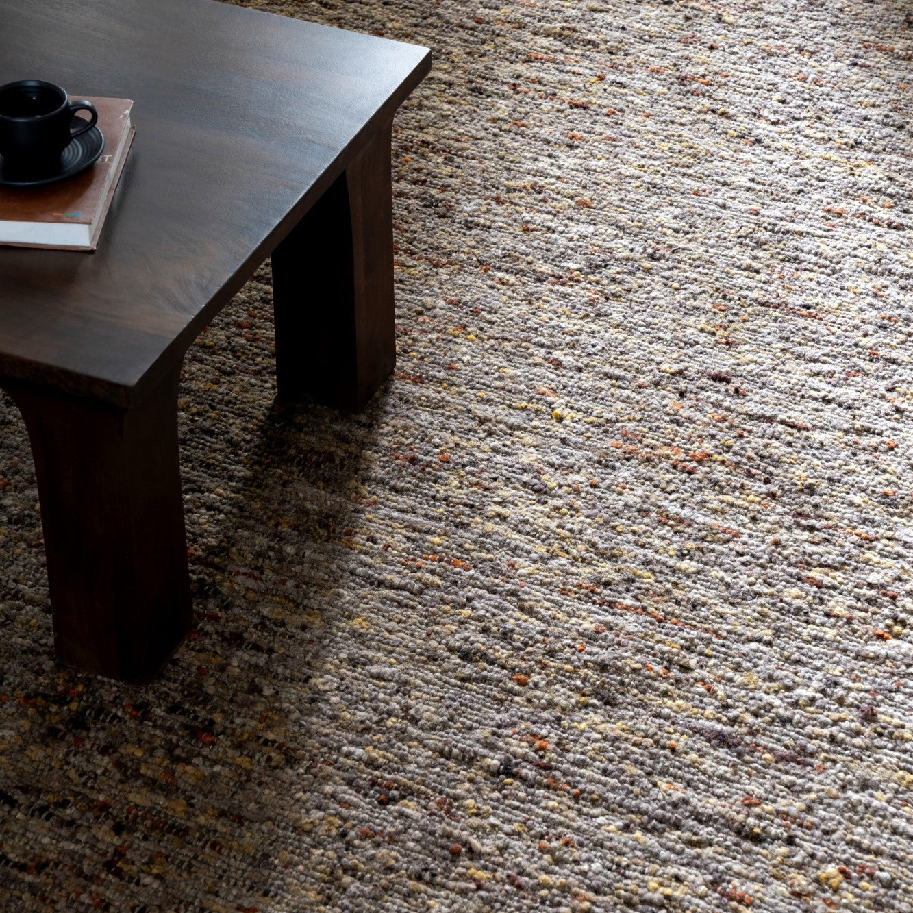 Luftig, inspired by the weathered beauty of sandstone cliffs, features a bold, layered texture. In rich tones of brown, gold, and terra, its handspun character brings warmth and a grounded spirit to any space.