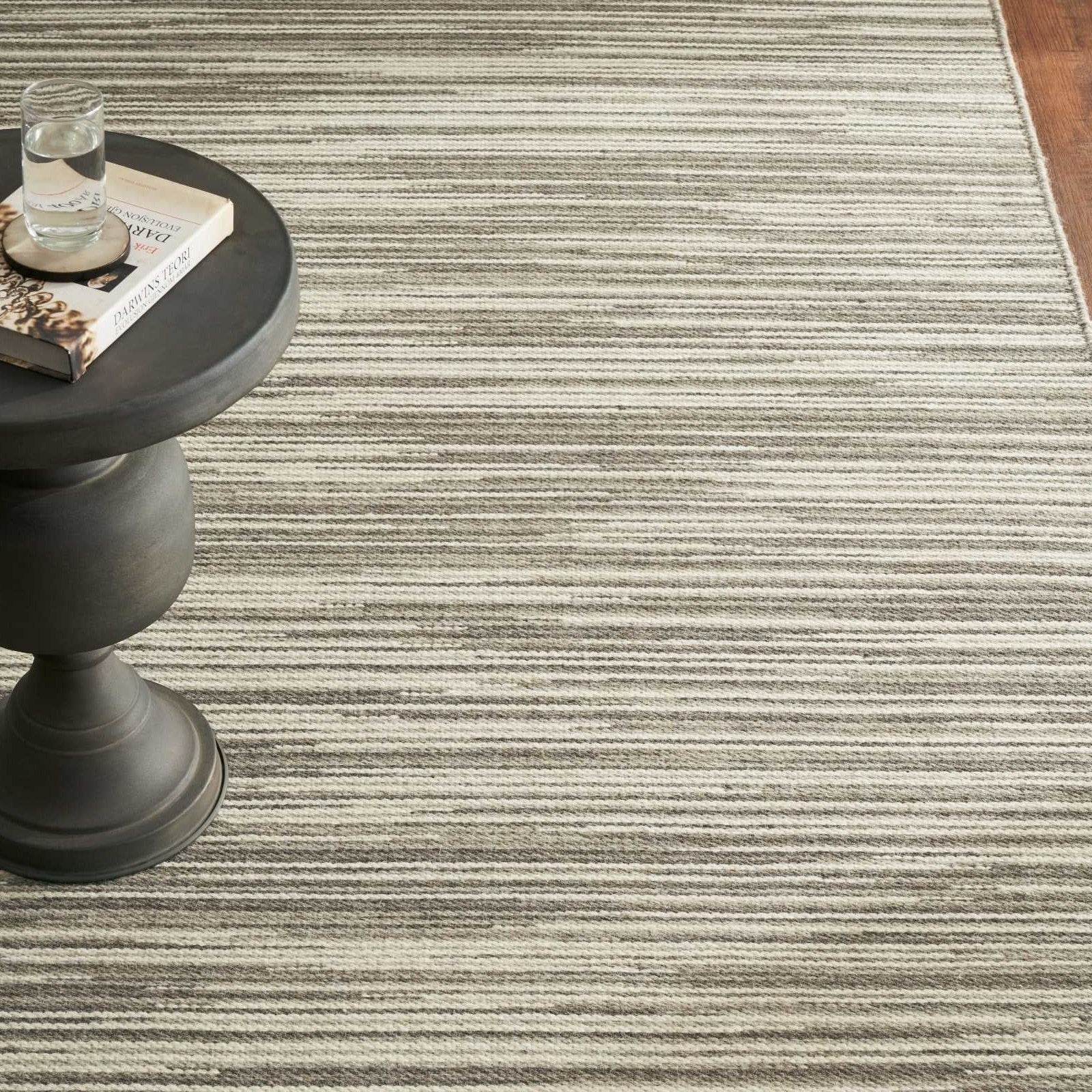 Rivus takes us on a journey like a graceful stream flowing aimlessly through the valleys. Undulating natural wool yarns meander thoughtfully through the high and low neutral tones, coalescing towards a subtle yet striking linear design.